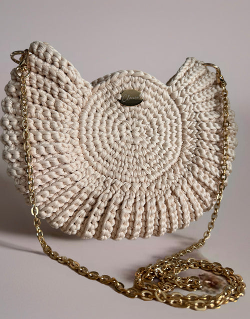 Craquez pour le sac Catane. Grâce à son maillage en spirale et ses couleurs douces il enveloppera vos tenues d'hiver d'une note cocooning et réconfortante.